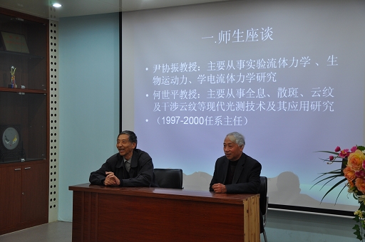 报告会后,尹协振教授与何世平教授共同为大家举行了座谈。尹协振教授仔细分析了“钱学森精神”后指出:“我们学习钱学森精神,不只是学习他的赤子之心和爱国热情,我们还要学习他的伟大教育思想”。