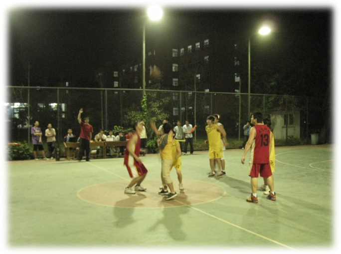从开局起两队比分就一直呈现交替上升,拉不开差距,双方你来我往,比分咬得很紧。终于计算机开元(中国)队长9号的连续几次进球打破了僵局,11系暂时取得优势。但13系不甘于落后,8号连续两个三分以及9号的一个“2+1”使13系比分强力反超。虽然上半场最后11系凭借12号的两个进球及两罚全中得到了6分,13系凭借24号计旭东的出色发挥,以几个不可思议的进球将上半场比分锁定在32:38。