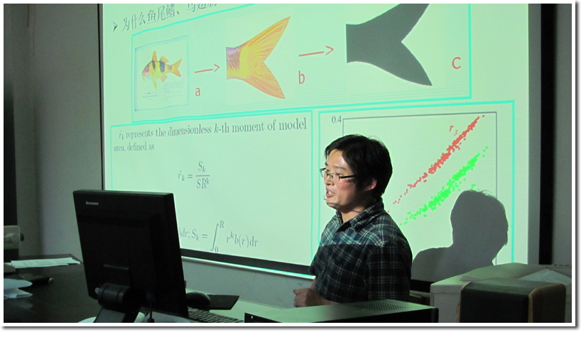 田方宝博士报告的题目是《模拟生物运动的流固耦合》。他深入浅出地向大家介绍了鱼和蜻蜓等生物在运动中,如何利用流体的特性获得向前的推力和向上的升力。报告中还附有动态效果图,使人更清楚了解其中的流动形态,形象生动。