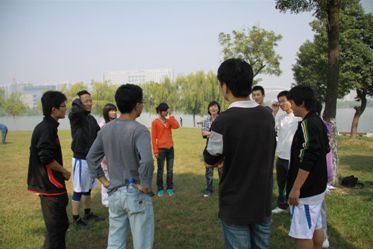 突出重围活动之前进行了被敌人包围的情境假设,活动要求圈内一位同学采取钻、跳、推、拉、诱骗等方式,力求突围挣脱,冲出由16名同学手拉手围成的包围圈。在活动过程中,同学们热情高涨,身体移动灵活,在攻防战中进行了多次试探、厮杀。突出重围活动体现了研会成员智慧解决问题的能力、坚持到底不服输的精神和在面临巨大危机的关头,保持冷静的头脑、克服困难的信心和勇气。