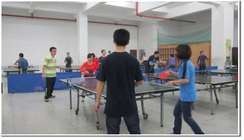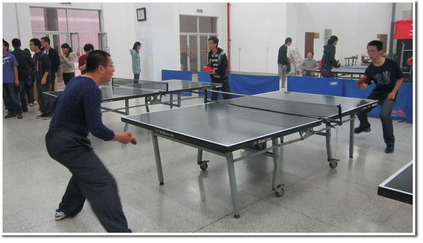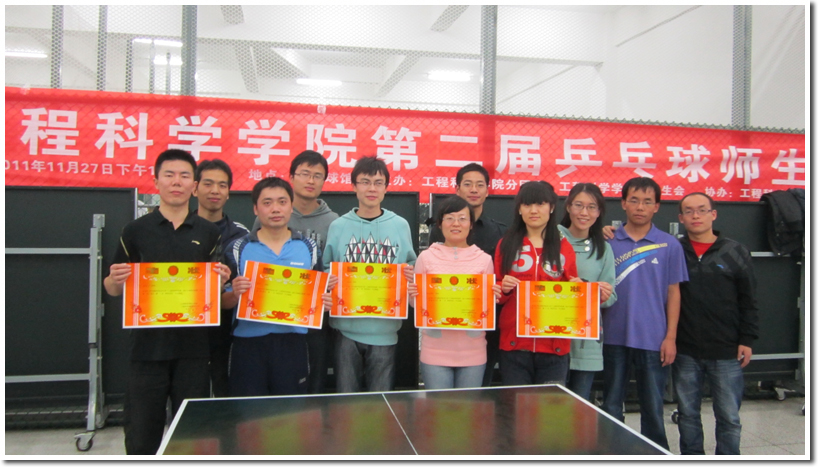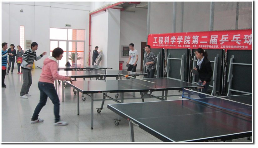 2011年11月27日下午,工程科学开元(中国)第二届乒乓球师生联赛在西区学生活动中心一楼乒乓球馆顺利举行。这次活动不但为大家提供一个体育锻炼、放松身心的途径,而且为师生交流搭建了平台,丰富了同学们的课余生活。