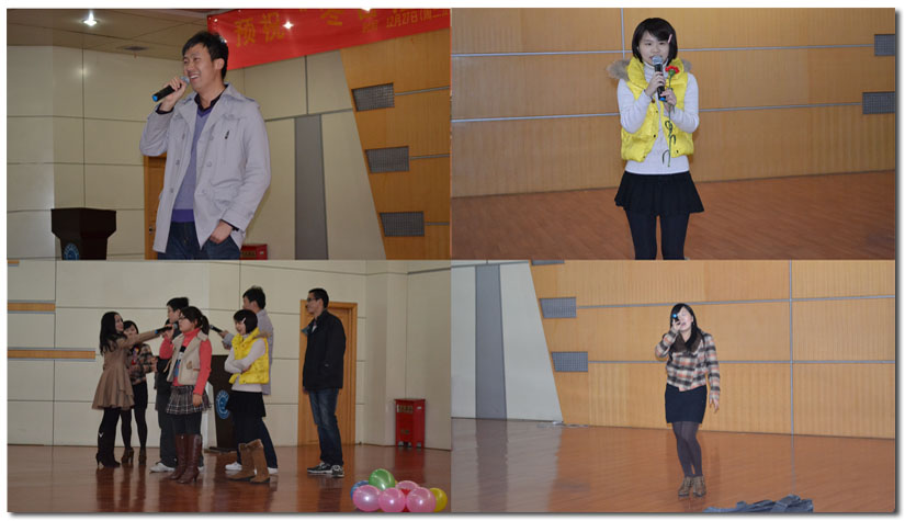接下来,是此次活动最有看点的表演——各个院系的搞怪个性走秀。工院的集体舞、搞怪POSE以及生院的模特走秀、信院的甩葱歌等等时刻引爆着全场的气氛。同学们的喝彩声、鼓掌声不绝于耳。在走秀期间还穿插了歌曲、单人拉丁舞等节目。