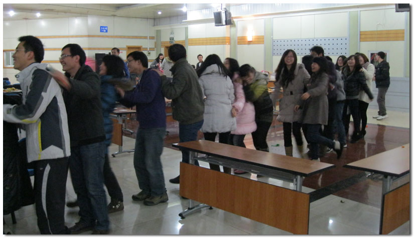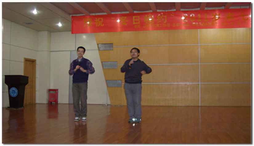 分区游戏结束后,各院研会主席发起集体兔子舞,现场的所有同学都积极参与到其中,在这欢快、有节奏的音乐下结束了本次的活动。至此,“冬日相约”2011岁末大联欢圆满落幕。