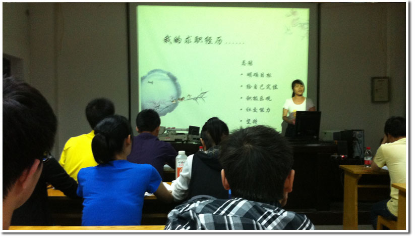 来自5系的范美如师姐与大家分享了她被成都基准方中建筑设计事务所录取的坎坷历程,告诫我们在求职的过程中一定要做好每一个细节,只要努力,幸运女神就会眷顾你。