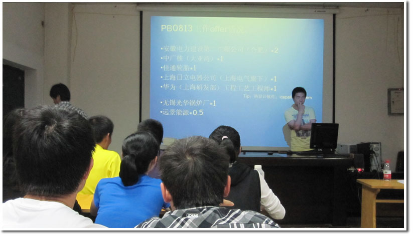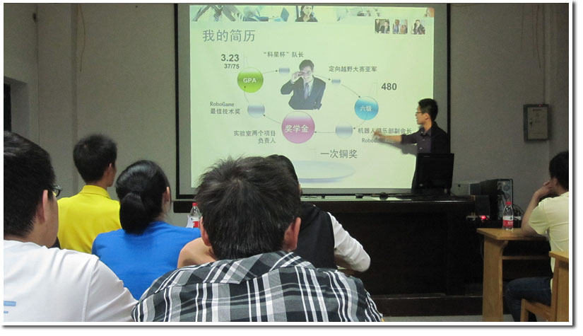 9系的尚磊磊师兄主要给大家介绍了研发岗位面试中的注意事项,并提醒师弟师妹学习成绩的重要性。