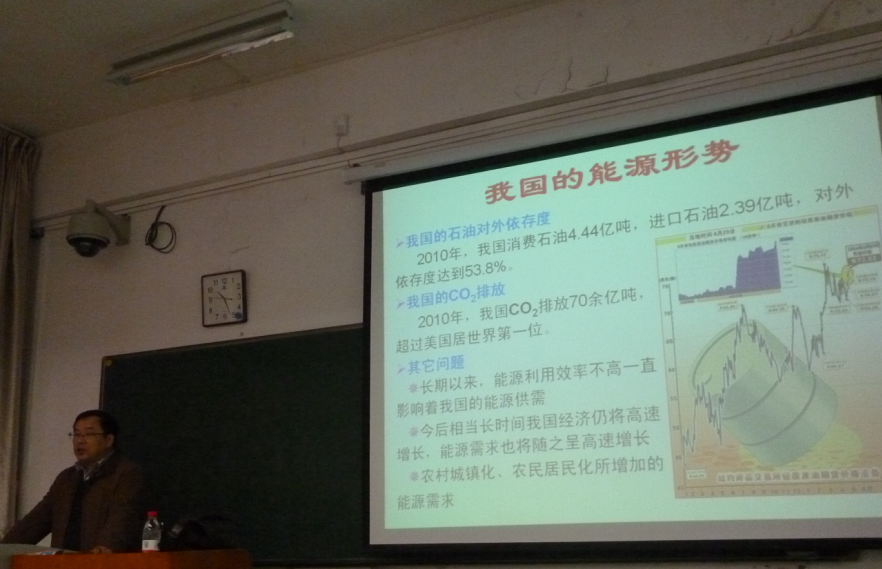 活动中,朱锡锋教授给我们讲了当今世界和我国的能源形势、生物质能、生物质能技术以及中科大生物质能研究现状。为解决环境污染和温室效应问题,生物质能是不可缺少的研究方向。