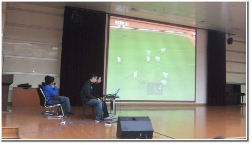 本次赛事是从下午1点开始,首先开始的是实况足球的比赛。双方技术精湛,时时给观众带来不可思议的进球,赢得热烈喝彩。