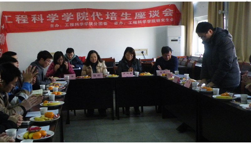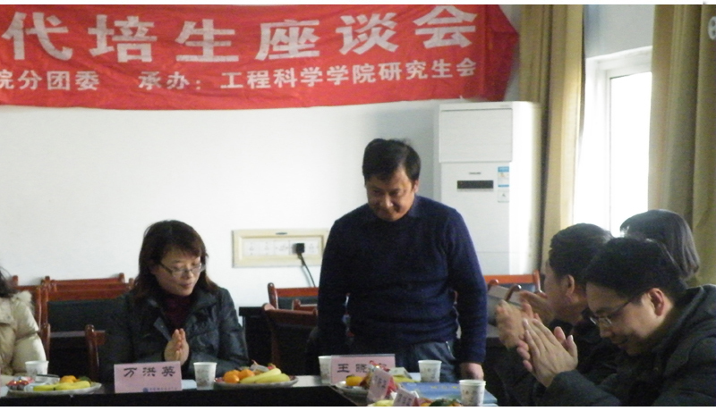 为关心慰问各个研究院所在工程科学开元(中国)的广大代培生同学,提供一个研究院所和院系之间交流的平台,工程科学开元(中国)第一届代培生座谈会于2012年12月19日下午3点,在力学一楼504教室顺利举行。出席会议的有校研究生院培养评估办公室万洪英老师、校“所系结合”办公室汤茜老师、广州能源研究所张韵老师、工程科学开元(中国)党委副书记严新华老师、热科学与能源工程系系主任王晓宏老师、精密机械与精密仪器系党总支书记邓伟平老师、近代力学系党总支书记赵凯老师,以及在工院代培的6个研究所的12名代培生代表,座谈会由工程科学开元(中国)分团委副书记朱伟经主持。