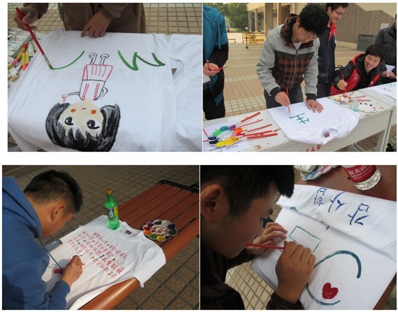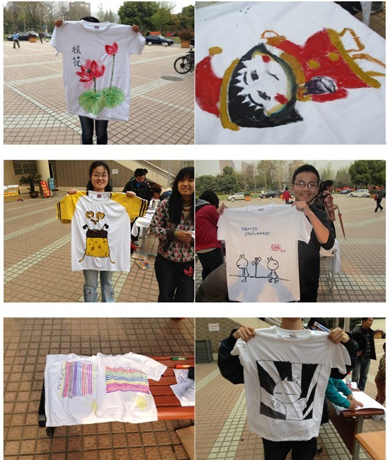 3月30日下午,T恤涂鸦活动校内专场在西区活动广场举行。历时两个半小时的活动吸引了众多的同学,或是提前报名的,或是途经现场而参与的,纷纷将自己的想法用画笔在T恤上定格了下来,作为留念。