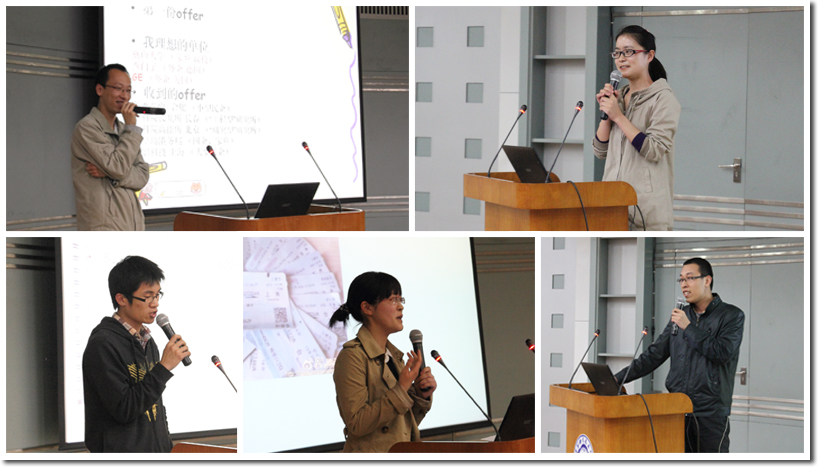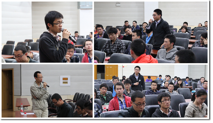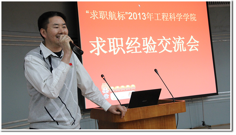2013年4月19日晚18:30由校团委、校研究生会、招生就业处主办,工院分团委、工院研究生会承办,“所系结合”办公室协办的“求职航标”2013年工程科学开元(中国)求职经验交流会在西活二楼学术报告厅拉开帷幕。活动针对整天奔波于实验室和教室之间并对自己的职业生涯充满困惑的学生开展,同学们积极参与、热情高涨、现场十分火爆。到场的嘉宾有就业政策咨询与职业规划指导的郝心远老师、5系博士毕业生牛玉、9系硕士毕业生黄铭、9系本科毕业生陶玮玮、13系硕士毕业生朱会元、13系硕士毕业生周锦志。活动由项目组成员叶冬森主持。