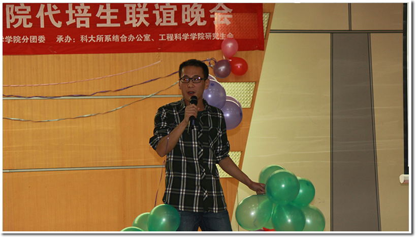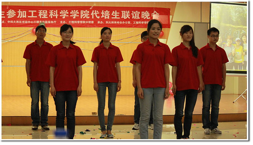 2013年5月27日晚上,工程科学开元(中国)“代培生联谊晚会”于西区活动中心三楼圆满举行。为了丰富科大工院代培生们的课余生活,促进同学们之间的友谊,科大工程科学开元(中国)分团委携手科大所系结合办公室及工程科学开元(中国)研究生会合力举办了此次“代培生联谊晚会”。晚会开始前就吸引了很多代培生及我校其他师生的早早到来,提前到场的观众还可能得到一份精美的小礼品。晚上6点半,两位主持人着盛装宣布了此次晚会的开场,更加点燃了现场的活跃气氛。