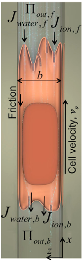 基于姜洪源教授于2013年发表在《Biophysical Journal》的论文(Jiang H.Y. & Sun X.S. Biophys. J. 105:609-619, 2013)中提出的关于动物细胞体积和压力动态调控的基本力生物学模型,他与约翰霍普金斯大学的Sean Sun教授及Konstantinos Konstantopoulos教授等合作者通过理论预测和实验验证进一步发现并证实了与二维平表面上的细胞迁移截然不同的、不依赖于细胞粘附的一种癌细胞迁移的新机制(Osmotic Engine Model),阐明了在细小管道内水分子和各种离子由细胞前端进入细胞,从后端离开细胞,从而实现细胞整体向前运动的这样一种新的细胞运动方式,揭示了水分子和离子的跨膜输运对细胞迁移的重要作用。这项研究成果有助于了解癌细胞在体内的迁移扩散过程,对癌症的预防与治疗等方面的研究有着非常重要的科学意义与临床应用价值。