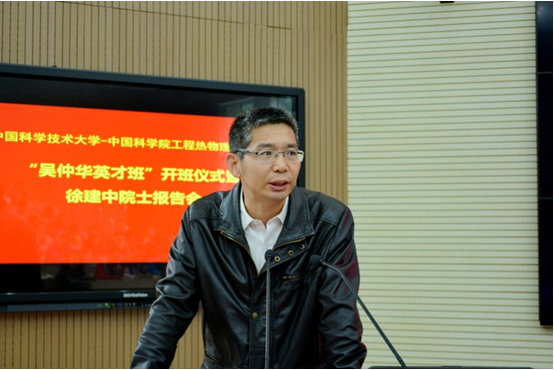 裴刚教授在致辞中感谢工程热物理研究所徐建中院士等人对于“吴仲华英才班”成立所做的努力。所系结合是科大办学的一个重要特色,热科学和能源工程系首任系主任和工程热物理研究所创办者都是吴仲华先生,在科研领域有很多共通之处,并且是我系本科生实习的重要基地。裴刚教授强调此次英才班的成立,能够为我系本科生提供更多的学习交流机会,同时也希望能够借此机会进一步加强相互之间的科研合作,共同促进工程热物理学科的发展。