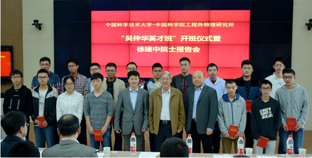 开班仪式最后由徐建中院士,陈海生副所长,陆夕云院长为首届“吴仲华英才班”奖学金获者颁奖并合影。