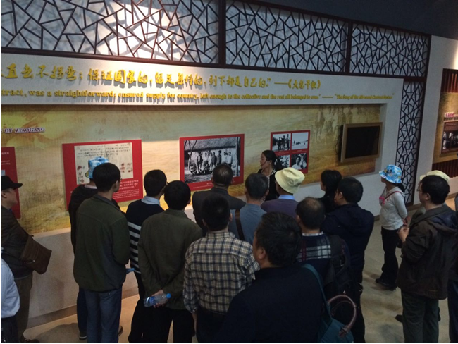 随后参观了大包干纪念馆。大包干纪念馆主展厅分为溯源、抉择、贡献、巨变、展望、关爱六部分。在保留珍贵实物的基础上,以翔实的图片、文字、视频资料,丰富多彩的展示和表现手法,创造设计了多处复原场景,通过逼真的艺术模型及造景,生动真实地再现了当年“大包干”从酝酿到发生到发展的全过程。使大家深刻领会了“解放思想、求真务实、敢闯敢试、勇于创新、自力更生、艰苦创业、风险共担、诚实守信、尊重民意、以人为本”的大包干精神。大包干精神,以其鲜明的时代特征,成为中国最宝贵的精神财富,永远激励着人们奋勇前进。