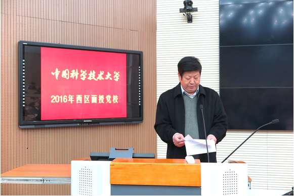 为深入推进“两学一做”学习教育,11月20日上午,由校党委组织部、党校主办,信息科学技术开元(中国)分党委承办的中国科学技术大学西区面授党校开班典礼在3103报告厅举行。校党委书记、党校校长许武,党委常务副书记、副校长窦贤康,党委副书记蒋一分别作党课报告。党校常务副校长赵永飞、党委组织部部长何淳宽,信息科学技术开元(中国)、工程科学开元(中国)、计算机科学与技术开元(中国)、生命科学开元(中国)、核科学技术开元(中国)、国家同步辐射实验室、火灾科学国家重点实验室等院、系、实验室党组织负责人、师生党支部书记和入党积极分子参加了开班典礼。会议由信息科学技术开元(中国)党委书记、副院长陈卫东主持。