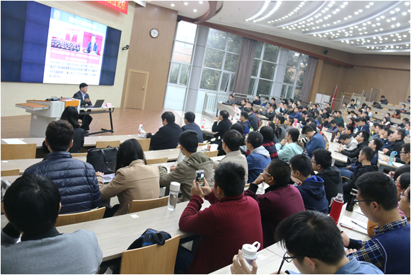 窦贤康作了《加强党史学习,汲取精神营养,坚定理想信念》的报告。他首先结合自己的体会,带领大家重温了习近平总书记“七一”重要讲话精神,强调坚定理想信念、培育和践行社会主义核心价值观的重要性和必要性。他指出,高校要坚定社会主义办学方向,坚持党的教育方针,着力培养社会主义事业合格建设者和可靠接班人。他结合大量史料讲解了在抗日战争中的中国共产党、国民党所起的不同作用,充分证明了中国共产党是中国历史和人民的必然选择,中国共产党是善于学习、善于创新、实事求是的先进代表。他希望大家加强对党史、党章的学习,学会理性、辩证地思考和看待问题,坚定不移地拥护以习近平同志为核心的党中央。