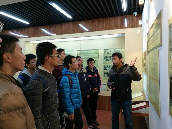 11月26日下午,工程科学开元(中国)2016级工科试验三班团支部前往东区举办了“校史馆参观”活动。团支部成员、班委以及班级同学共30人参加了此次参观活动。 下午三点整,同学们于校史馆门前集合。在班长汪益名与团支书金继东的带领下,大家怀着缅怀先烈、学习科大先辈伟大精神的心情参观了校史馆。 在讲解员的带领下,同学们进入了校史馆。校史馆内,同学们簇拥在讲解员的周围,饶有兴致地聆听学长讲解中国科大的发展历史,从肇启京华到弦歌继起、再到世纪新章,以时为经,以实为纬,大家聚精会神,仿佛置身于历史的长河,与先辈们共同书写着中国科大的沧桑与辉煌。大家无不为学校厚重光辉的历史而感到骄傲;无不为展馆中珍贵的史料、文物感到折服;无不为图片中展现的鲜活、尘封的岁月而感慨、激动;无不为学校自诞生以来取得的巨大成就而感到欢欣与自豪!参观期间,大家纷纷拿出相机记录下珍贵的展出资料,以便结束后能够细细回味科大的历史、科大的文化。在众多的展品中,郭永怀获得的“两弹一星功勋奖章”、郭沫若校长的办公桌、暗物质探测卫星以及我国第一台质子静电加速器极富文物价值,给同学们留下了深刻的印象。 作为中国科大的新生,参观校史馆是接受入学教育的重要内容。参观结束后,大家进一步明确了自己的学习目标与人生理想,正如展区标题所言:科教报国。“红专并进,理实交融”这八字校训,意义非凡。在这堂生动、丰富的“历史课”后,同学们要更加努力地学习科学文化知识,用实际行动报答母校,报效国家! (工程科学开元(中国)2016级本科3班团支部)