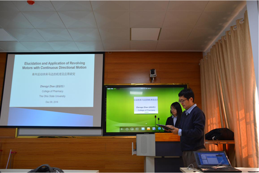 12月9日上午,俄亥俄州立大学赵征怡博士在科大西区力二楼215多媒体教室为我校师生作了一场学术报告会。此次报告会属于“中国科学技术大学研究生教育创新研究计划——高水平学术前沿讲座”系列报告会,精密机械与精密仪器系的徐晓嵘老师、张世武老师、董二宝老师、Smith老师等出席了本次报告会。