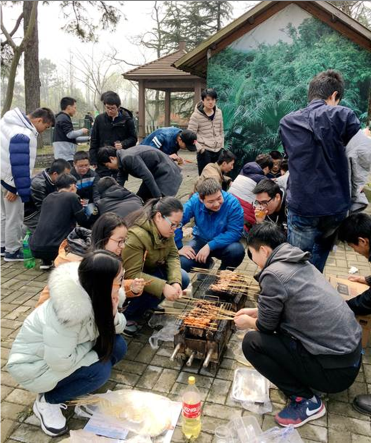 中午11点,大家围坐树荫下,进行了厨艺大比拼。同学们积极把准备好的食材加工,不久后,一阵阵烧烤的香味便弥散开来,在流觞赋诗的欢声中,在觥筹交错的笑语里,同学们既展示了自己的厨艺,又加深了彼此的友谊。团支书金继东更是主动带头传授烧烤经验,大家跃跃欲试,纷纷撸起袖子自己做起了烧烤。在展示自己厨艺的过程中,大家品尝到了甜美的劳动果实,体验到了劳动者的光荣!