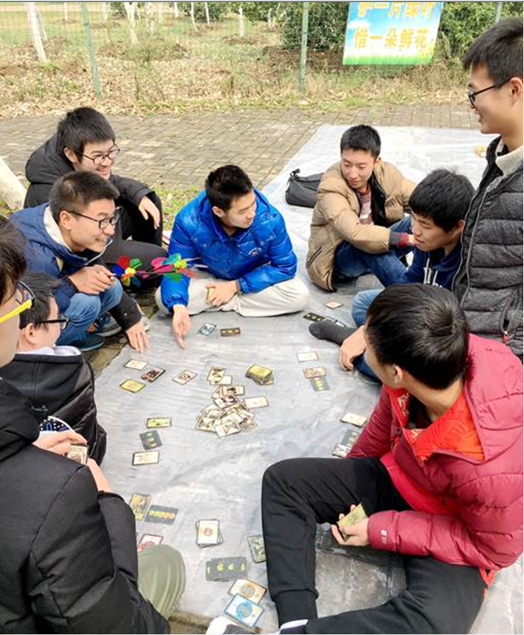下午一点,吃过午饭后,同学们开始自由活动。“春风自古无凭据,一伍骑夫弄纸鸢”,为了更好地体验春天,大家举行了放风筝比赛。一个个风筝高擎蓝天,看这个,似春燕,却比春燕飞得更高,看那个,像雄鹰,却比雄鹰更加绚丽。大家看准风向,收放自如,一只只美丽的风筝在天空中自由自在地飞翔!放过风筝后,大家围坐一圈,又进行了“三国杀”桌游比赛。想当年,三国群雄,金戈铁马,气吞万里如虎;看今朝,科大学子,运筹帷幄,决胜牌局之上。同学们斗智斗勇,友好比赛,既训练了思维,又学习了历史,还加深了友谊。