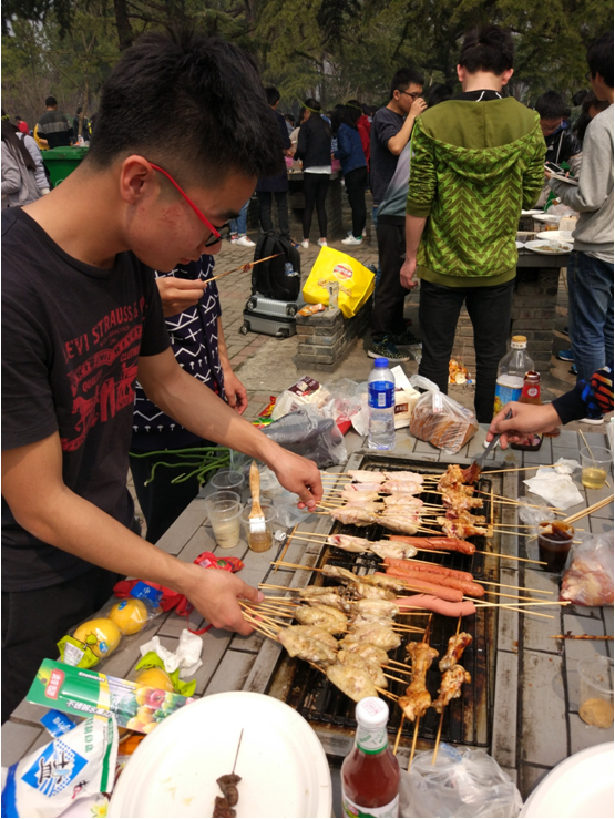 时至正午,班长组织开始进行“野外烧烤”。大家在“休闲岛”上开始用自己独特的烧烤方式为大家准备美味的食物,大家玩出许多新花样,做饭这个很平常的话题也变得那么有趣。
