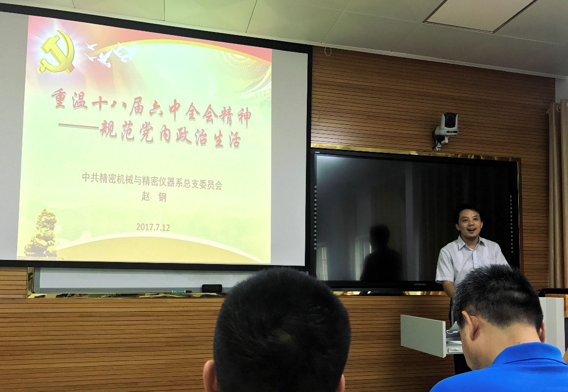 7月12日下午,精密机械与精密仪器系党总支召开全系党员大会,重温十八届六中全会精神。会议由系党总支书记赵钢主持。