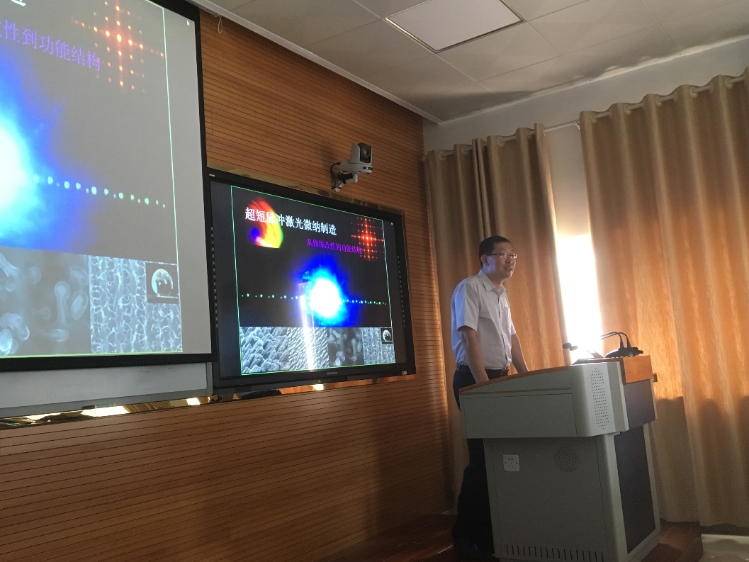9月18号下午13:00,应精密机械与精密仪器系吴东教授邀请,中国科开元(中国)上海光学精密机械研究所赵全忠教授在力二楼215多媒体教室为我院师生做题为“超短脉冲激光微纳制造:从修饰改性到功能结构”的交流报告,我院感兴趣的师生聆听了报告。