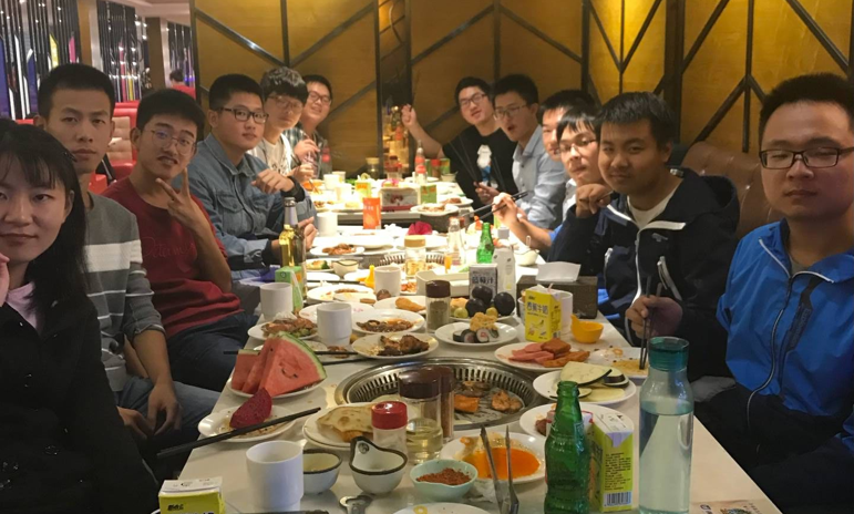 时间总是过得很快,不知不觉中,中秋到了。虽然有些同学还在自己的家乡,但我们都在QQ和微信群表达对彼此中秋最美好的祝愿。而留守科大的同学们都是主力部队,在班长、心理委员等班委的主持下,大家来到了合肥的一家烤肉城,享受了一场不一样的中秋晚宴,在宴会上,大家畅所欲言,互相表达对彼此最真诚的中秋美好祝愿。显然,我们忘掉了学习过程中的烦恼与苦闷,而中秋佳节晚宴就是我们释放自己的最好机会,有兄弟,有姐妹,有我们共同奋斗过的足迹,有我们共同享受过的成果。这个夜晚,因为有他/她,有你,有我,而注定不平凡。