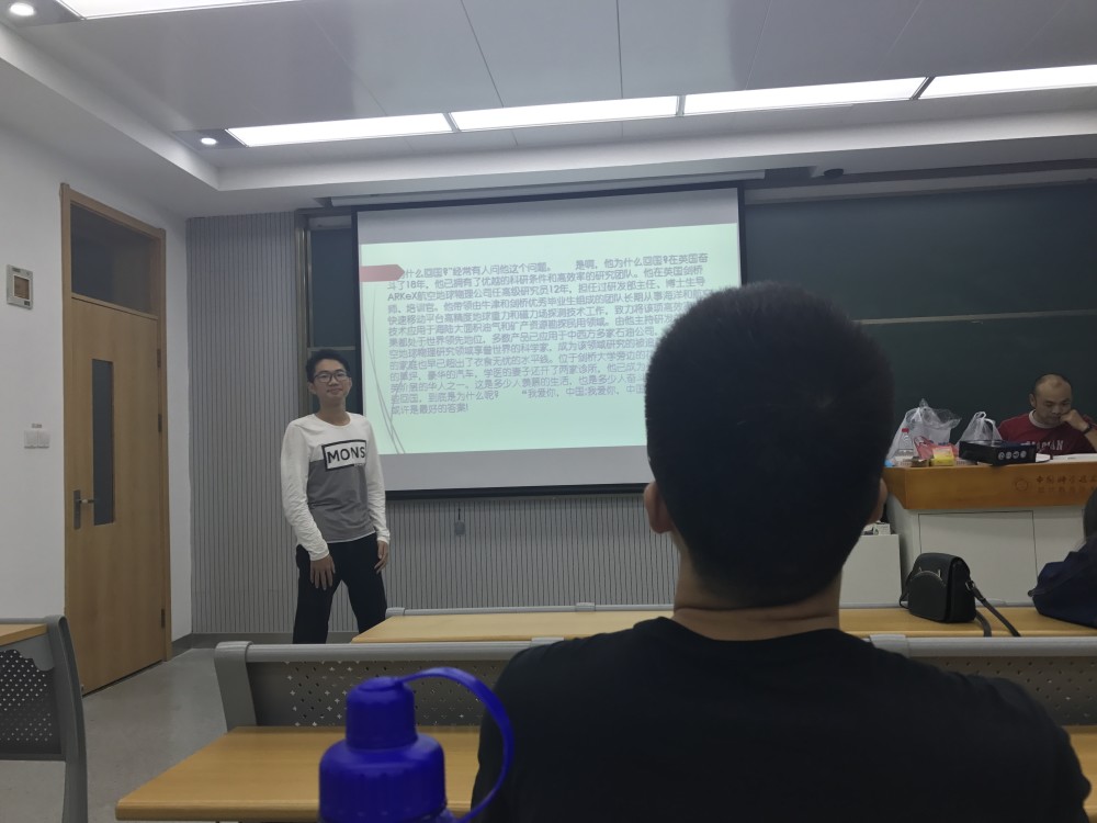 然后,支部书记给团员们介绍了黄大年同志的先进事迹,以事为引,总结了黄大年同志的不朽革命精神。并激励同学们向黄大年同志学习,做个心系祖国,矢志努力学习,为国奉献的优秀科大人。