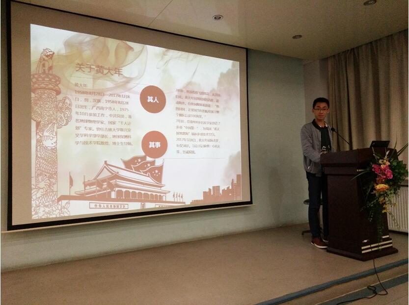 班会由团支部书记孙传林主持,首先大家共同了解了黄大年同志的生平和先进事迹。黄大年同志满怀着对祖国的热爱,放弃了国外的高薪工作毅然回到祖国,夜以继日,呕心沥血,为我国深地探测技术填补了多项空白,为国家科学技术的发展奋斗到了生命的最后一刻。他心有大我、至诚报国;教书育人、敢为人先;淡泊名利、甘于奉献的精神都值得我们铭记和学习。