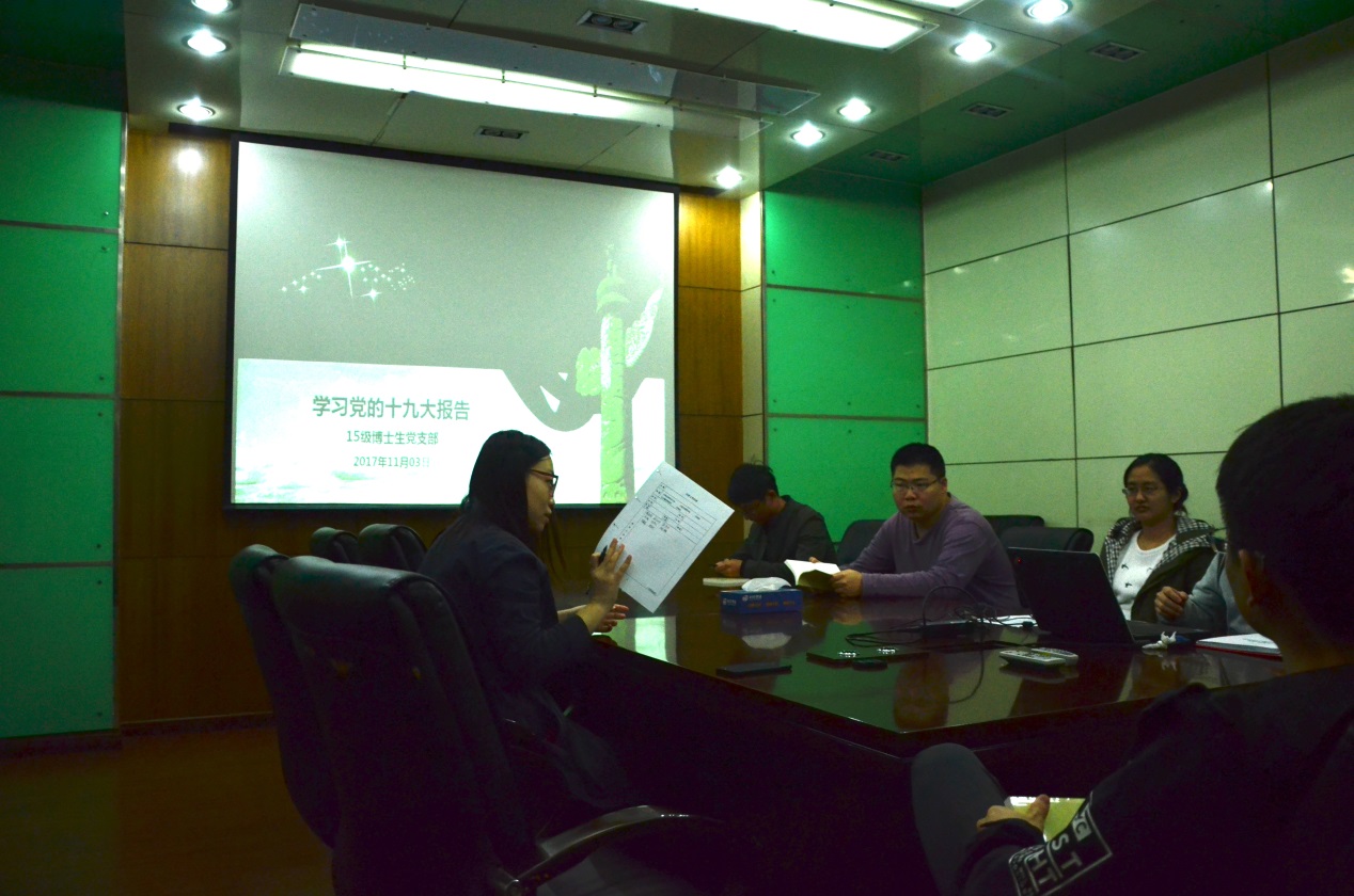 11月3日,工程科学开元(中国)5系2015级博士生党支部在力学一楼427会议室举行了学习党的十九大报告活动。会议由工程科学开元(中国)5系2015级博士生党支部书记冯佳宾同志主持。