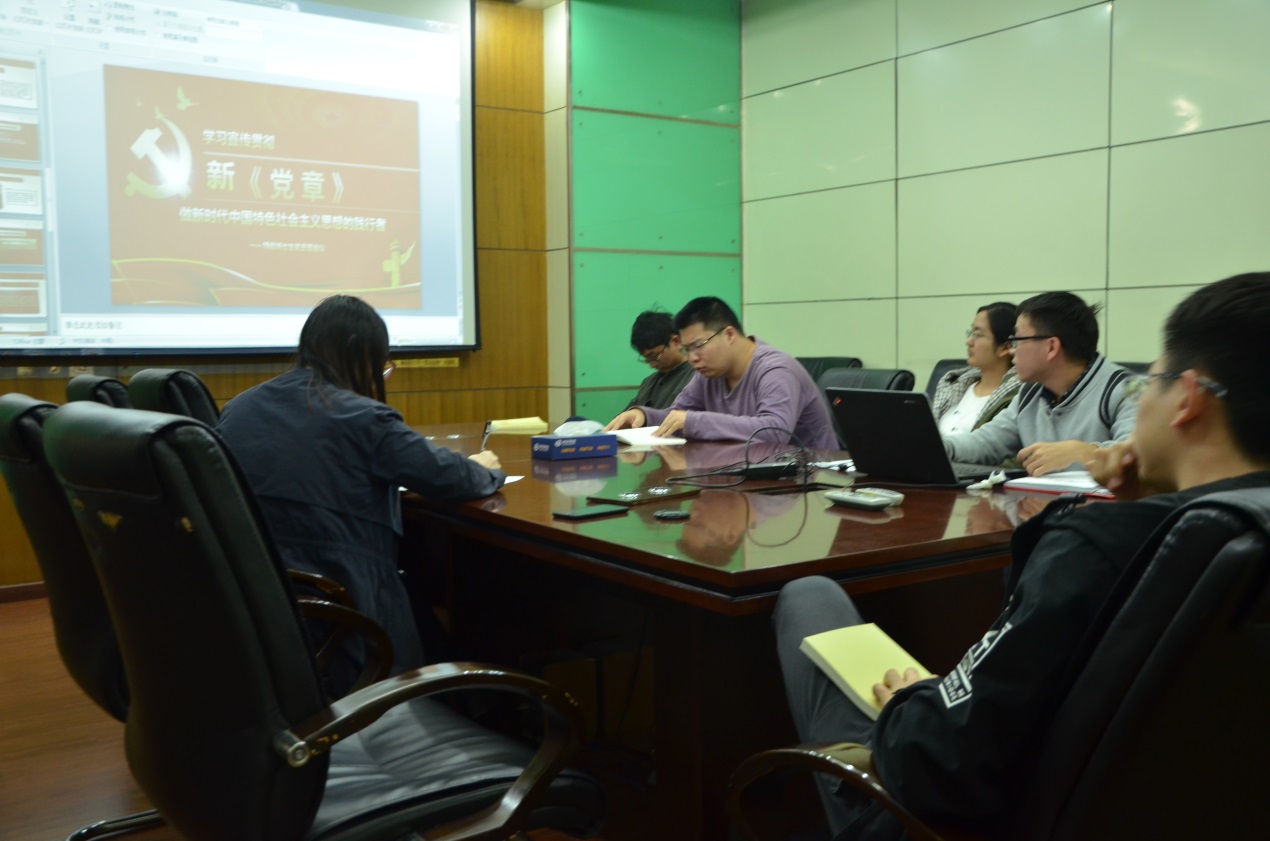 首先支部成员认真细致地学习了习近平总书记在党的十九大上的报告。然后,又学习了新《党章》,对于新《党章》的修订内容进行了深入领会。
