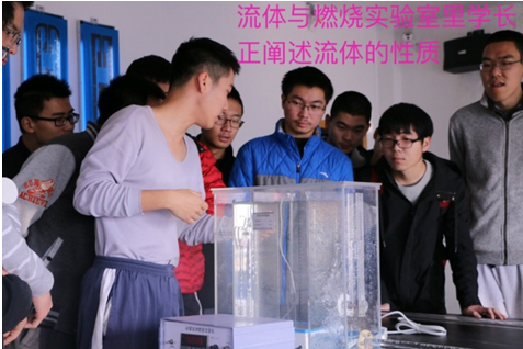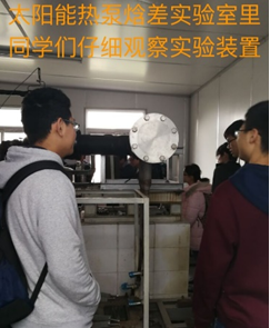 冲击动力学实验室位于电一楼,现场老师颇为热情地为大家讲解了此项应用于页岩气开采的前沿科学,更亲自演示了试验过程,让同学们目不转睛。其余实验室位于力一力二楼。流体和燃烧实验室是流体力学学习的实验基地,让同学们对将来的学习有了一个初步认识。多相与多场耦合力学实验室,先进的计算机群与实验设备,在科研实验的热火中,完美诠释了什么叫前沿科学和高新技术。高温风洞强化换热实验台的设备其貌不扬,但实验室老师介绍了它的各项参数之后,大家为之而叹服,真是“不可貌相”。在太阳能热泵焓差实验室,虽然无法当场看到一次实验的进行,但老师的精彩讲解让人兴趣盎然,同学们纷纷踊跃提问。