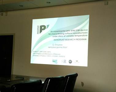 3月16日上午10:00,法国普瓦提埃大学研究生院院长Christophe Coupeau教授应倪勇老师的邀请,在力学一楼227会议室为我系师生带来了题为“热力载荷下超高真空的原位AFM/STM表面纳米结构表征设备:对于理解基本塑性现象的应用”的高水平学术报告,我系感兴趣的师生到场聆听了报告,报告由倪勇老师主持。