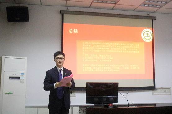 最后,院团委书记于倩老师致辞,她表示研究生会秉承红专、锐意进取、改革创新,以“全心全意为同学服务”为宗旨,坚持“从学生中来到学生中去”的工作方法,积极做好思想引领工作、维护同学权益的工作、丰富校园文化的工作,取得了一系列令人骄傲的成绩。希望新一届主席团再接再厉,承前启后,不忘初心,牢记使命,以活动为载体,努力开拓出学生工作的新局面。