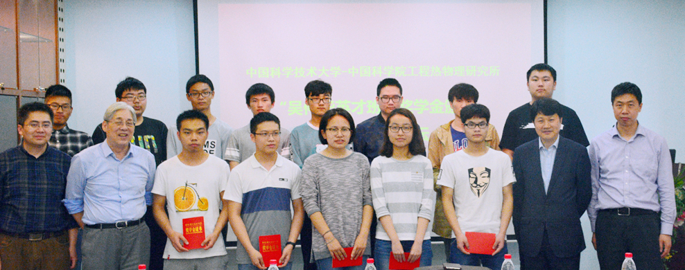 最后由徐建中院士,陈海生副所长,胡芃书记为“吴仲华英才班”奖学金获者颁奖并合影。