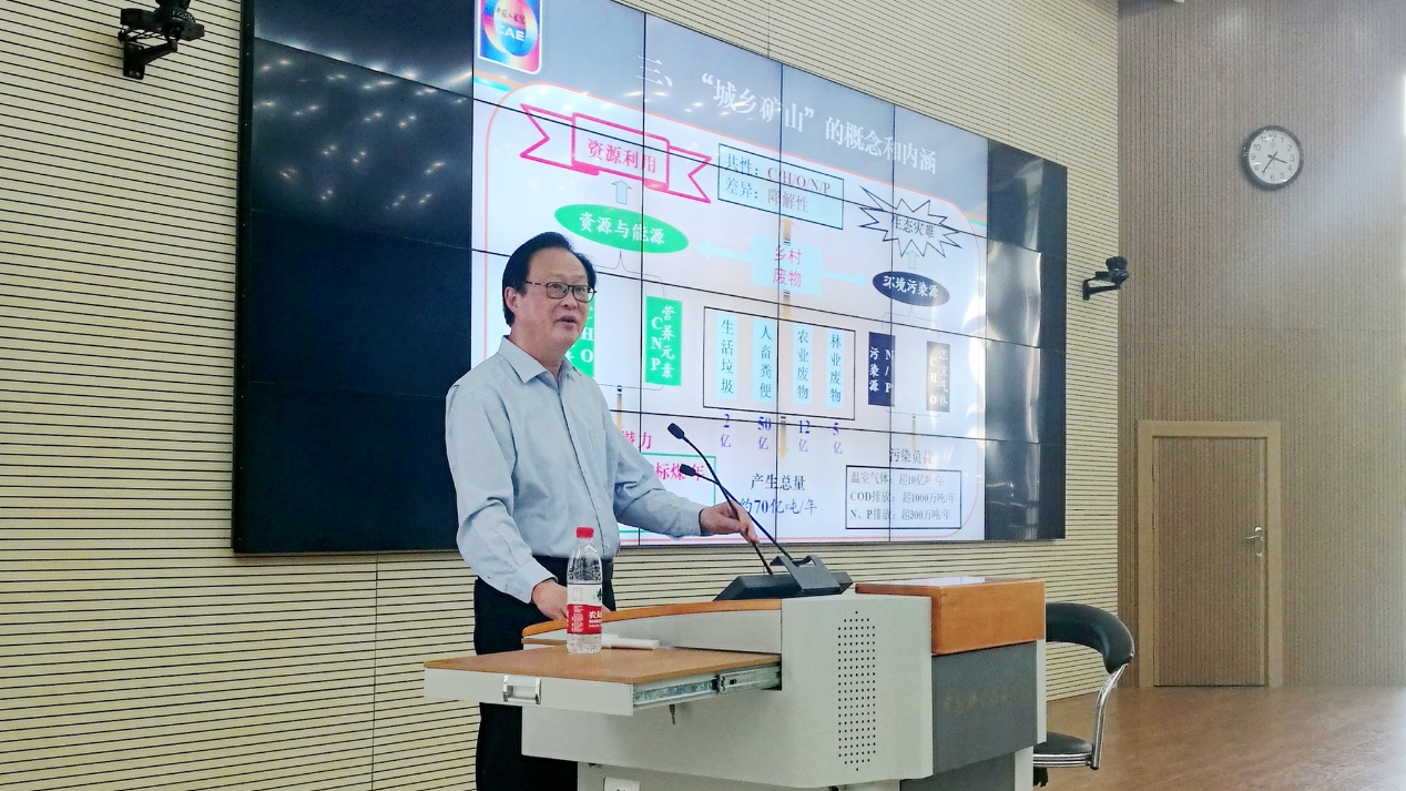 陈勇院士从创新驱动发展、人才素养提升、发展“城乡矿山”、创新工程科技、助力乡村振兴五个方面进行了报告。他首先回顾了我国科技发展取得的一系列举世瞩目的科技成就,同时指出应“居安思危 自主创新”。陈勇院士通过多个生动形象的案例分享了自己对“影响创新的理念障碍”的思考。随后,陈勇院士讲述了由“城市矿山”到“城乡矿山”的创新理念,认为生产生活过程排出的大量的废物实际上都是资源,可以再生利用,犹如资源矿山。而党的十九大进一步提出乡村振兴战略。因此将“城市矿产”拓展为“城乡矿山”,其内涵更丰富,范围更广阔,影响更深远。陈勇院士介绍了“无机矿渣变废为宝技术、生活垃圾综合利用系统、农业秸秆资源化利用系统、畜禽粪污资源化利用系统、农林废弃物高值化利用系统”等“城乡矿山”主要技术。并提出农村代谢共生产业园、生态农业建设和“农业云”平台建设,系统集成多种技术,变废为宝,实现资源循环利用,助力乡村振兴。