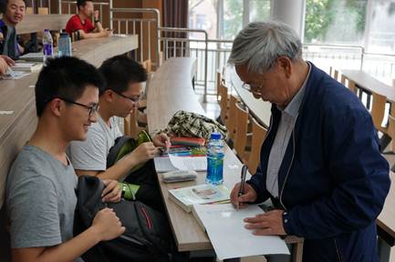 周教授长期从事爆炸力学的理论研究和工程应用。他在报告中用很多工程实例的精彩视频和动画给同学们展示了爆破技术在国家经济建设,特别是基础工程、安全工程中的广泛应用,比如矿山爆破开挖矿石资源,才能为现代制造业提供材料。爆破工程师的工作看似平凡,却为国家、为社会做出了重要贡献,发挥了重要作用,他们好似铺路石子,在那里默默奉献。周教授强调,爆炸、爆破是具有一定危险性的研究和工程技术,只有认真注意做好从设计、施工、监测到管理的各个环节细节才能避免事故,成功在于一丝不苟。“成功在于一丝不苟”是科学精神,也是科学工作态度,只要扎实学好力学基础知识,善于运用力学研究分析方法,我们才能推动、不断创新爆破技术的研究,解决实际工作中的难题。课堂上,同学们认真听讲,积极参与爆破事故案例分析与讨论,提问的同学还得到了周教授的馈赠礼物—周教授刚劲有力的“成功在于一丝不苟”书法作品,不少同学还请求周教授签字,留下了这一嘱语。