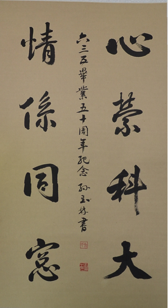 因特殊原因未能返校的孙玉林学长,寄来了书法作品,表达对母校及同学的思念之情。
