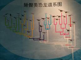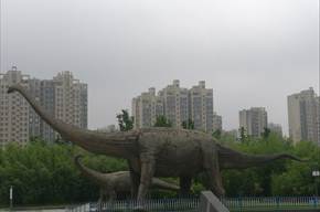 在这两个展厅之后是一个巨大的恐龙展厅,放置了几具原始比例的恐龙骨架雕塑,其中有著名的霸王龙,大水沟吉兰泰龙,也有安徽本地的黄山龙、蜥脚类。展厅别处还有一些恐龙的化石残品、骨骼等,也有一些关于恐龙食性、生殖、谱系的知识。这个展厅中孩子们很多,他们指着恐龙骨架的雕塑兴奋喊叫,一旁的家长看着雕塑下方的说明为孩子讲解。