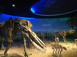 到达博物馆后,大家随意组队,自由参观。一部分同学直接前往生命演化厅,参观古生物化石(蓝田生物群、巢湖鱼龙等珍贵化石和其他许多化石),了解地球上的生命起源、发展和演化的进程。观赏了从寒武纪、二叠纪到三叠纪、侏罗纪再到第三纪、第四纪的生命演化史。另一部分同学选择先来到地球厅,参观各类岩石标本,了解地质作用(岩浆作用、风化运动、冰山剥蚀等)的力学原理和作用效果,学习地球早期演化的知识。展厅进门处设有一个曲面LED地球,能够动态地介绍地球的演化历史;展厅中还设有一张地图和一台多媒体设备,介绍中国实时地震带分布图。
