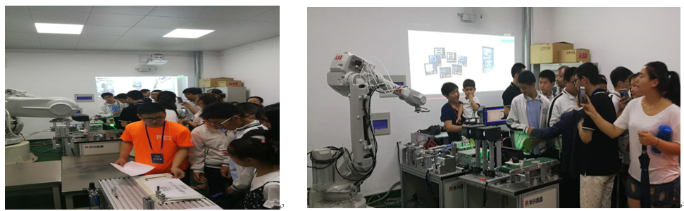 观众进入到工业机器人展区,看到的是一个个大家伙在表演,它能熟练绘制出中科大校徽及“中国科学技术大学欢迎您”字样,更能完成零部件的完美组装,引来参观者的连连惊呼,纷纷驻足拍照。