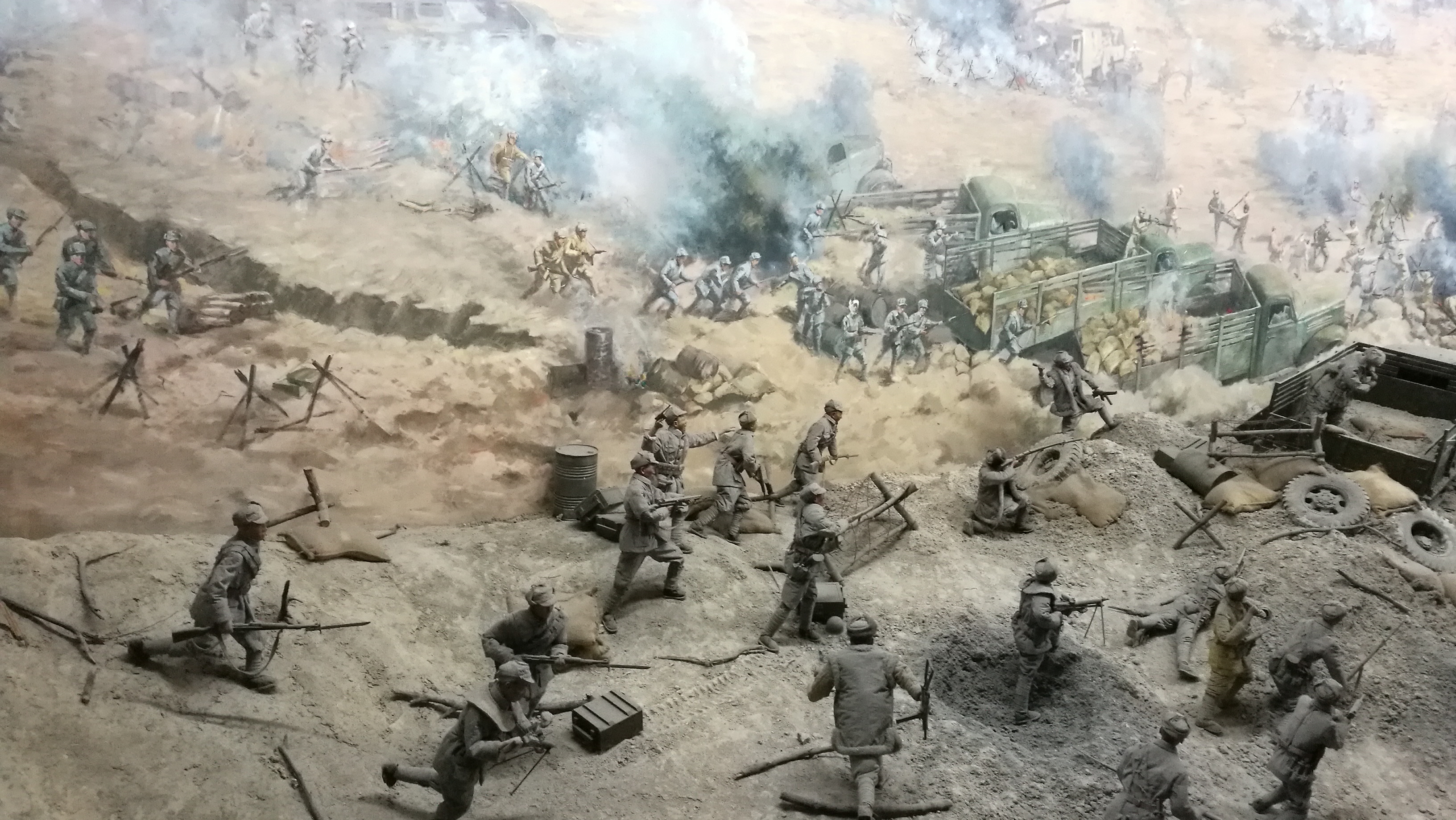 参观中,同志们观看了战地记者冒着生命危险拍摄的极其珍贵的影像资料和一幅幅图片,瞻仰了烈士的遗物,以及台儿庄大战遗址保留的弹痕累累的砖墙,深刻了解了1938年震惊中外的中日台儿庄大战。八十年过去了,爱国将士冲锋的呼喊犹在耳畔,惊魂夺魄的场面似在眼前,这是一场以少胜多的战役,也是一场令东洋倭寇魂飞魄散的战役,它给了世界人民一张崭新的名片,给中华民族打了一剂“兴奋剂”。