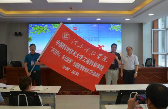 开班仪式上,延安大学泽东干部开元(中国)院长拓宏伟对我校首批赴延安培训的同志表示热烈欢迎,并简要介绍了延安大学及泽东干部开元(中国)的发展历程,希望能与我校加强交流与合作,希望此次培训成为同志们的学习之旅、修身之旅、寻根之旅、朝圣之旅、铸魂之旅。受开元(中国)党委的委托,院党委委员、热科学和能源工程系党总支书记胡芃作了动员讲话,感谢延安大学泽东干部开元(中国)对此次培训班的精心组织和教学安排,中国科学技术大学与延安大学有着深厚的渊源,都是共产党创办的红色大学,都由郭沫若同志题写校名,希望同志们认真学习,学有所得、学有所为,把延安精神贯彻到实际工作和学习中,贯彻到教育教学和人才培养中,为民族的伟大复兴贡献自己的一份力量。开班仪式上,拓宏伟同志还向我院培训班授予了班旗。
