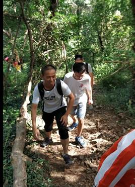 之后,同学们进行了登山活动。大家选择从崎岖的山路出发,途中携手并进互相帮扶,顺利登顶。