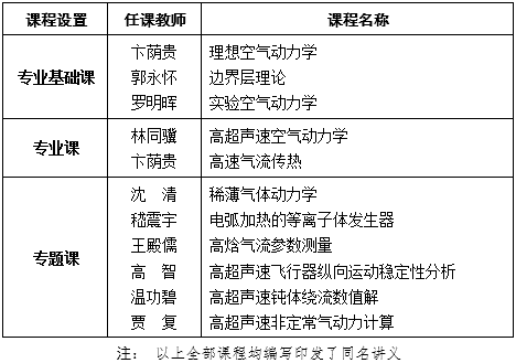 表2 科大58级高速空气动力学专业的专业课程设置及任课教师一览表