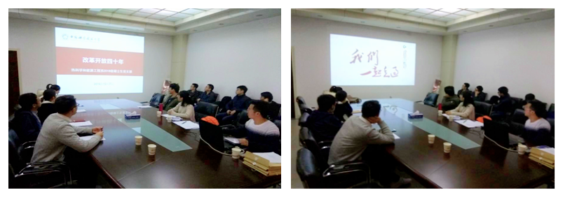 为庆祝改革开放四十周年,12月7日下午,热科学和能源工程系2018级硕士生党支部在力一楼227会议室组织了“改革开放四十周年”主题党课学习。支部书记范渊同志主持会议并主讲。