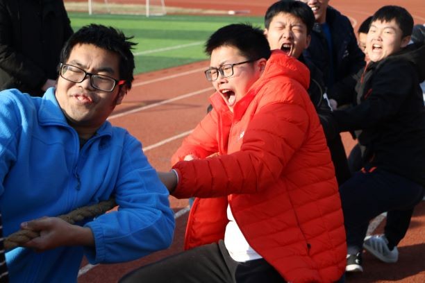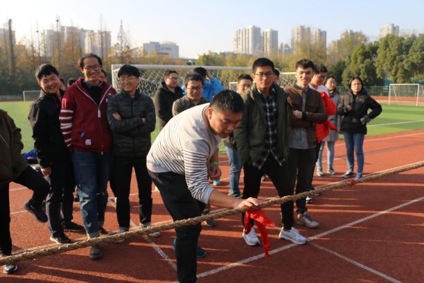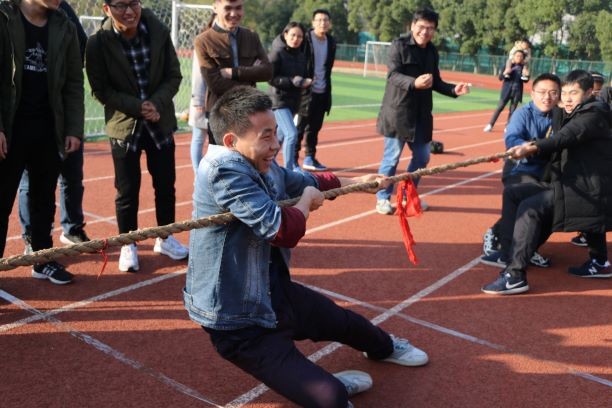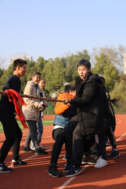 下午两点半,拔河比赛在同学们的期待中开始了。参赛同学们都将自己必胜的信心与坚毅的意志写在了脸上。随着裁判的一声令下,参赛双方都使出了自己全身的力量,努力为己方队伍拼搏。观赛的同学们也不吝惜自己的力气,助威声一阵高过一阵。全场的气氛在一阵阵有节奏的呼喊声中被点燃。尽管每场比赛结束后都会有胜出与失败,但是大家收获的更多是参与比赛的乐趣。
