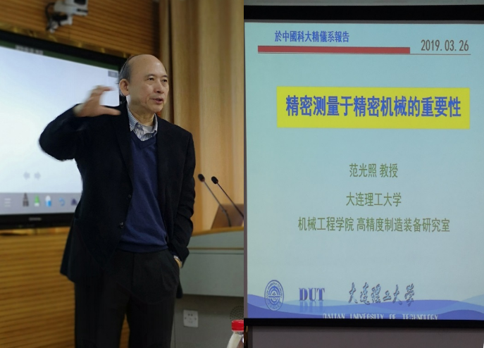 3月26号早上09:30,大连理工大学教授范光照教授应黄文浩教授邀,于力学二楼215多媒体教室给精密机械与精密仪器系师生带来了题为“精密测量于精密机械上之重要性”的交流报告,精密机械与精密仪器系感兴趣的师生到场聆听了报告。